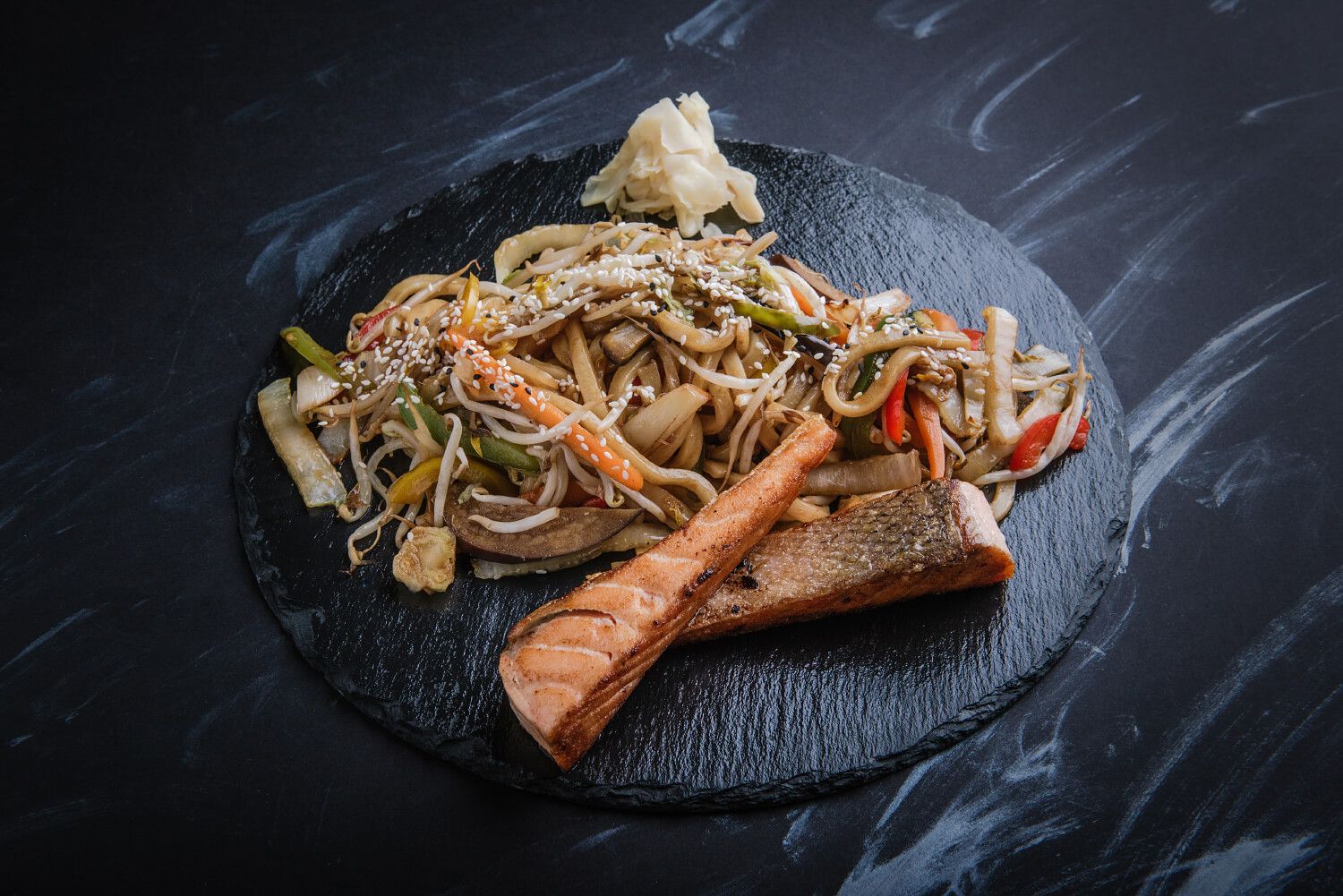 Sake yaki udon